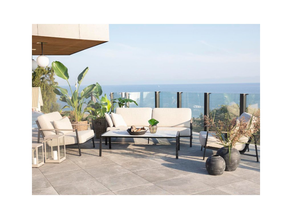 Lyra je moderná a spoločenská skupina záhradného nábytku v nádhernej zmesi materiálov. Sedačka je mimoriadne pohodlná vďaka hrubým vankúšom s penou vysokej hustoty. Podšité sú olefínovou látkou, ktorá má zvnútra vodoodpudivý povlak. Rám pozostáva z čiernej práškovanej nehrdzavejúcej ocele (304) s nádhernými detailmi z umelého ratanu na podrúčkach.Zloženie: 2x kreslo, 1x lavica, 1x stolík Materiál: kovový rám z práškovou úpravou, syntetická textília, umelý ratan Čalúnenie: 100% Olefin s UV ochranou v pieskovej farbeFarba rámu: čiernaRozmery: kreslo 79 x 98 x 78 cm Š/H/Vlavica 193 x 99 x 78 cm Š/H/Vstolík so sklom 140 x 75 x 40 cm Š/H/V
