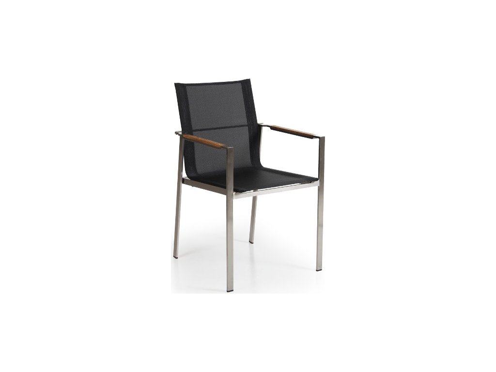 Luxusná záhradná stolička Gotland kombinovaná nerezovou oceľou a prvotriednym teakovým drevom od dizajnéra Dicka Björka. Na prvý pohľad zaujme svojim spracovaním a farebným kontrastom čiernej syntetickej textílie a prírodným teakovým drevom. Materiál: nerezový rám, teakové drevo a syntetická textília Rozmery: 53 x 57 x 86cm Š/H/VHmotnosť súpravy: 6 kg