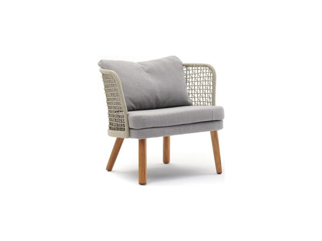 Kreslo z kolekcie EMMA sa vyznačuje prepletením operadla v lane, prepracovaným detailom, ktorý zvyšuje jeho tvar a dizajn. Má ideálne rozmery pre maximálny komfort.Materiál: hliníková konštrukcia potiahnutá syntetickým vláknom OLEFIN s priemerom 6mmKonštrukcia je odolná voči poveternostným a slnečným žiarením (UV).Sedadlo je potiahnuté gumou Dryfeel® s otvorenými bunkami, ktorá je vhodná na vonkajšie použitie a je odnímateľná.Povrchová úprava: operadlo je k dispozícii v 2farbách: béžová a tmavo šedá; nohy môžu byť hliníkové alebo drevené (Iroko) pre vonkajšie použitie. Čalúnenie sedadla je k dispozícii v rôznych kategóriách „outdoorových textílií Varaschin“.Hmotnosť: 21 kg