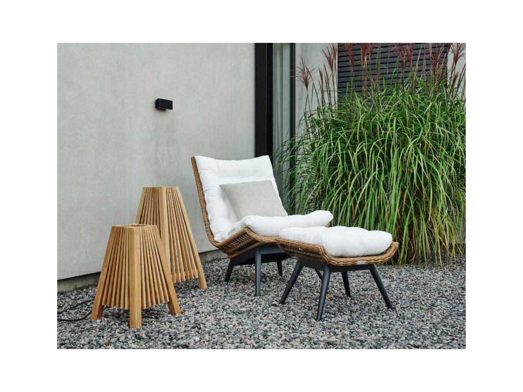 Relaxujte štýlovo. Relaxačné kreslo Covelo bude peknou a pohodlnou súčasťou každej terasy. Umelý ratan v prírodnej farbe sa perfektne hodí k mäkkému bielemu vankúšu z olefínovej látky. Jemný sklon poskytuje vynikajúci komfort sedenia. Podnožník je predávaný zvlášť.Pohodlné, elegantné a s prirodzeným pocitom. Covelo je séria so vzdušným tkaným umelým ratanom s pekným vzorom, v ktorom sa pohodlne sedí. Materiál: syntetický ratan a hliníkový rámRozmery: 65 x 88 x 101 cm Š/H/VVýška sedu: 48 cmFarba ratanu: hnedáFarba textilného polstra: bielaHmotnosť: 11 kg
