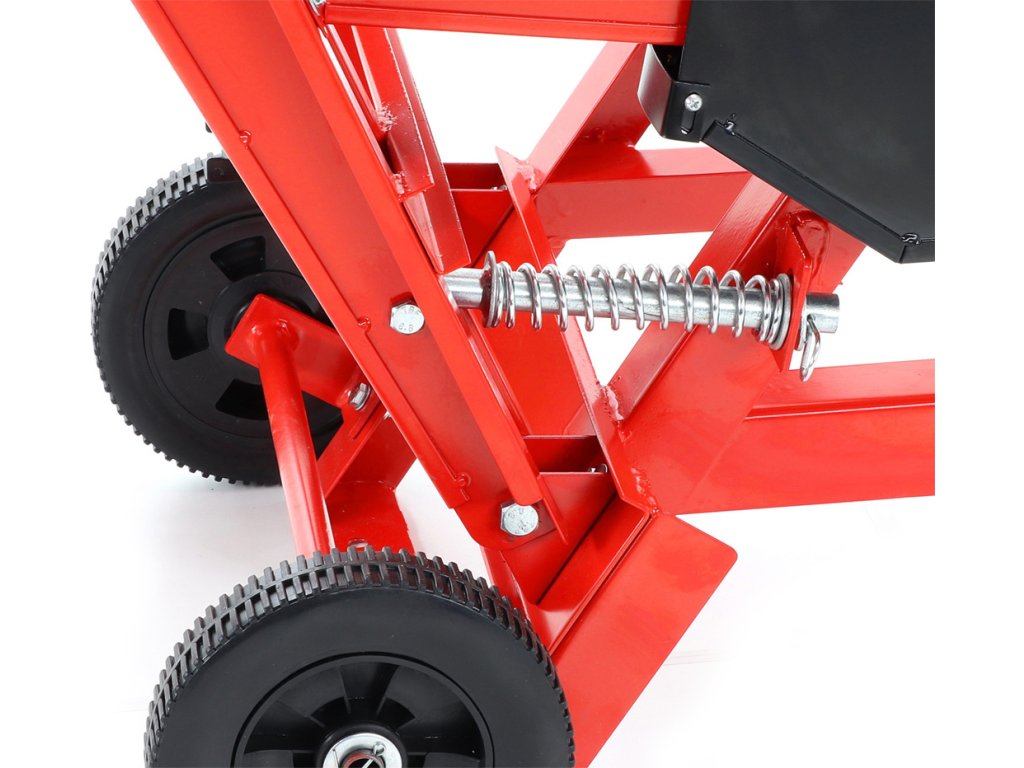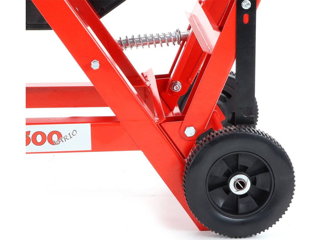 O bezpečné řezání se stará konstrukce kolébky a pohyblivý kryt, který zakrývá pilový kotouč po celou dobu řezu. Kolébka je vybavena speciálními prolisy proti protočení polena. Transportní kolečka slouží pro pohodlnou manipulaci.