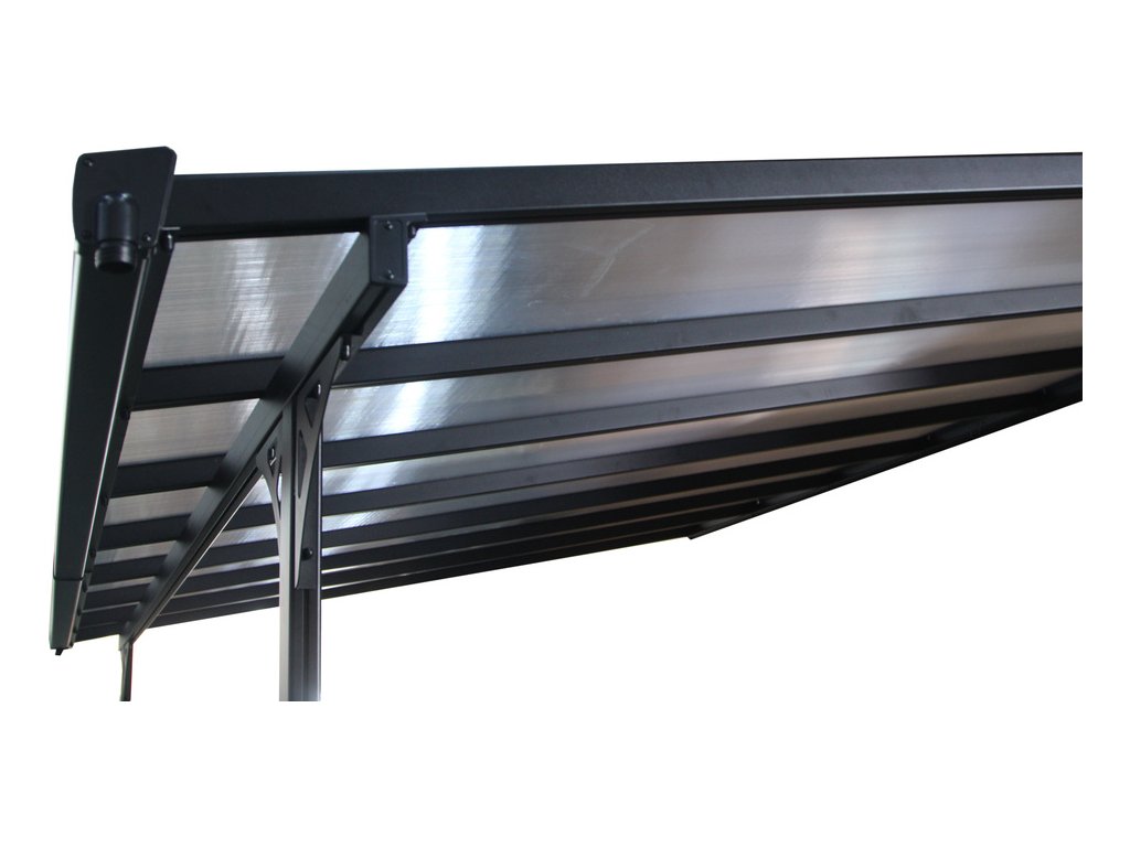 Stabilní a robustní konstrukce z hliníkových profilů a 6mm silného polykarbonátu se 100% UV ochranou.