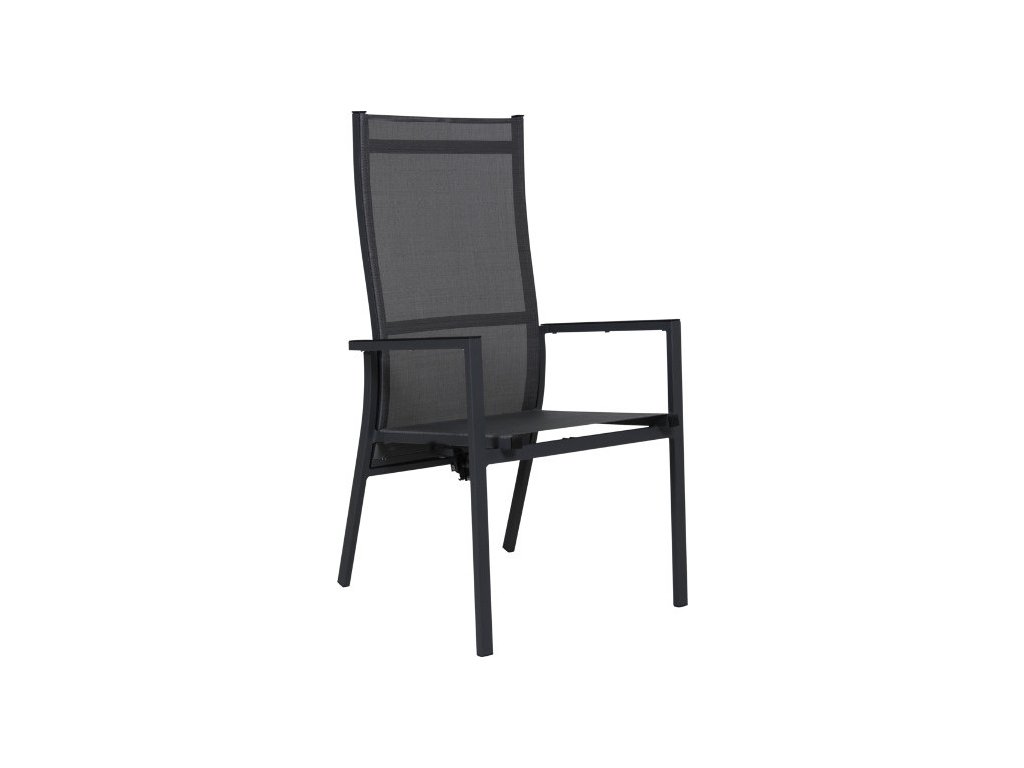 Pohodlná záhradná stolička s polohovateľnou opierkou. Rám stoličky tvorí pevný hliníkový rám. Polohovanie stoličky zabezpečuje vzduchý tlmič, vďaka ktorému je polohovanie tiché a komfortnejšie. Sedaciu a opernú časť tvorí syntetická textília s UV ochranou.Rozmery: 51 x 62 x 109 cm (Š/H)Materiál: hliníkový rám a syntetická textíliaFarba: čiernaHmotnosť: 6 kg