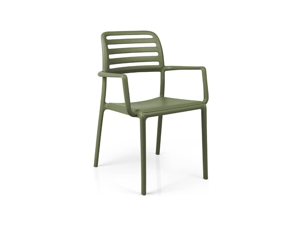 Celoplastová stohovateľná stolička s opierkou na ruky. Vyrobená je z kvalitného polypropylénu s najvyššou UV ochranou. Stolička je vhodná pre komerčné využitie. Farba: 6. farieb vo variantochMateriál: polypropylénRozmery: 58,5 x 59 x 86 cm (Š/H/V)Hmotnosť: 4,5 kg