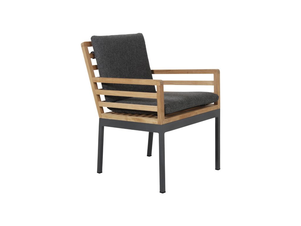 Elegantná stolička Zalongo, ktorá kombinuje vysoko kvalitný teak s hliníkom v antracitovej farbe. Rovné teakové rebrá umocňujú dojem kvality a zároveň elegancie. Textilný sedák s opierkou je súčasťou stoličky.Materiál: hliníkový rám a prémiové teakové drevoFarba rámu: antracitRozmery:šírka: 58 cm hĺbka: 60 cm celková výška: 83 cm výška sedu: 44 cm Hmotnosť: 12 kgPríďte si ho vyskúšaťVystavený na predajni