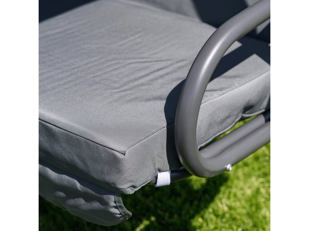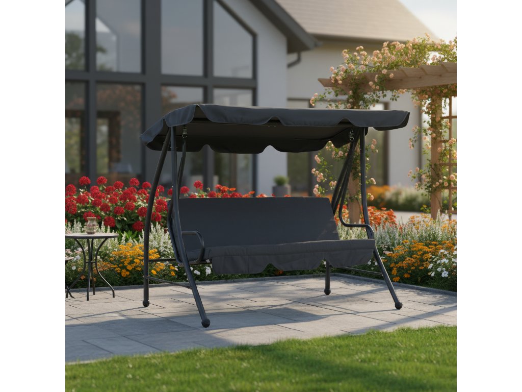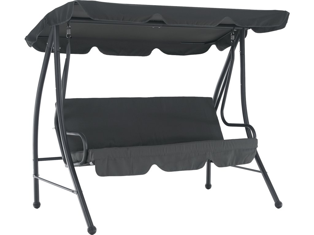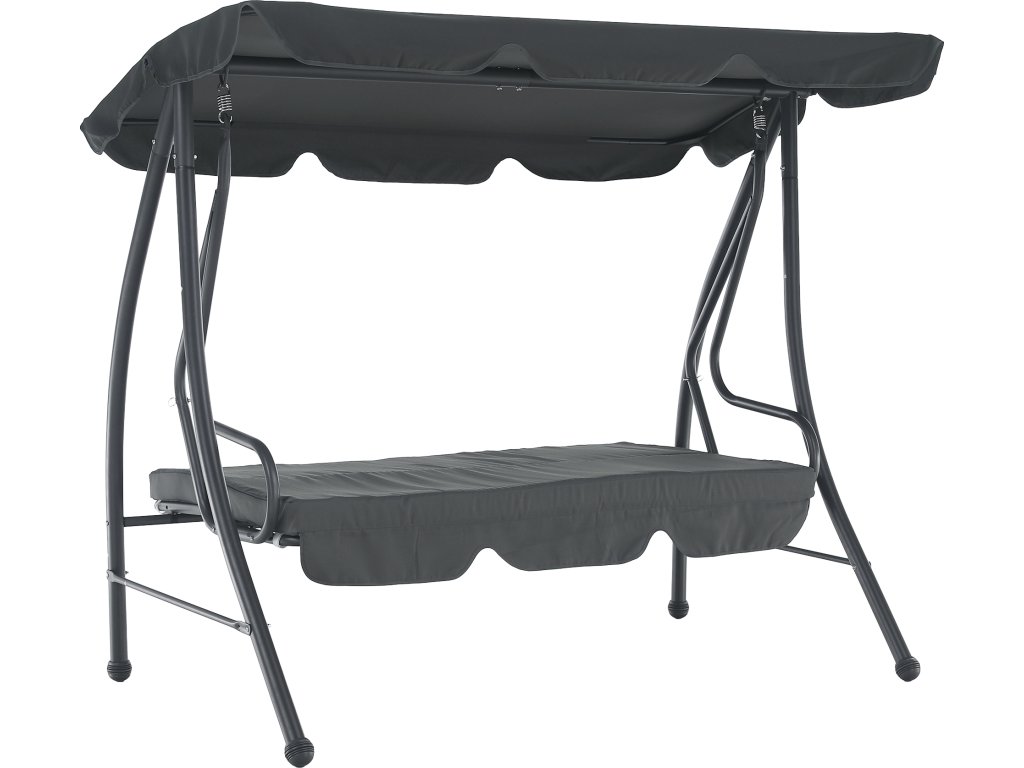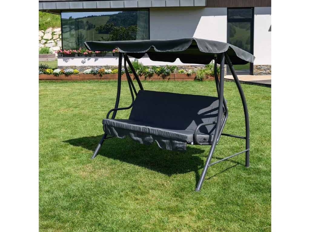 Materiál: kov/polyesterová tkanina Barva: šedá Rozměry (ŠxHxV): 201x120x167 cm Výška sedu: 48 cm Hloubka sedu: 53 cm Šířka sedu: 160 cm Výška zad: 54 cm Kovová konstrukce Možnost rozložení na ležení Rozměry ležení: 120x203 cm Nosnost: 200 kg Voděodolné potahy Tloušťka polštářů: 8 cm Prat ručně Potah upevněný suchým zipem Protiskluzové nožičky Dodáváno se stříškou Rozměr stříšky (ŠxV): 201x120 cm Bez možnosti nastavení sklonu Dodáváno v demontu