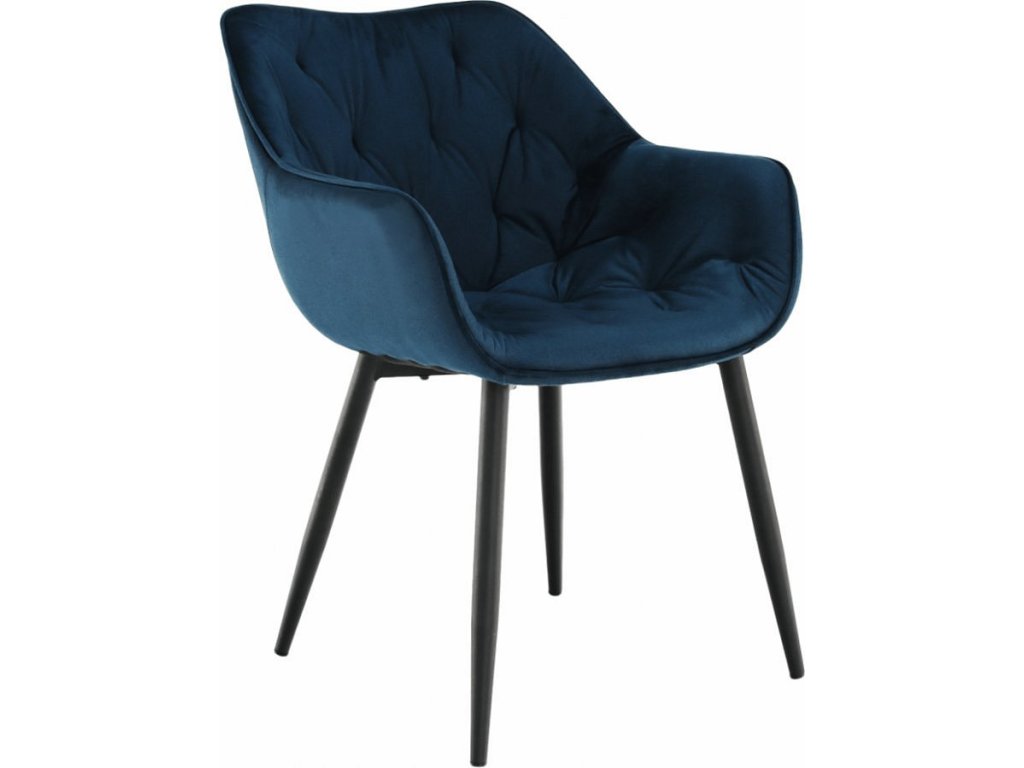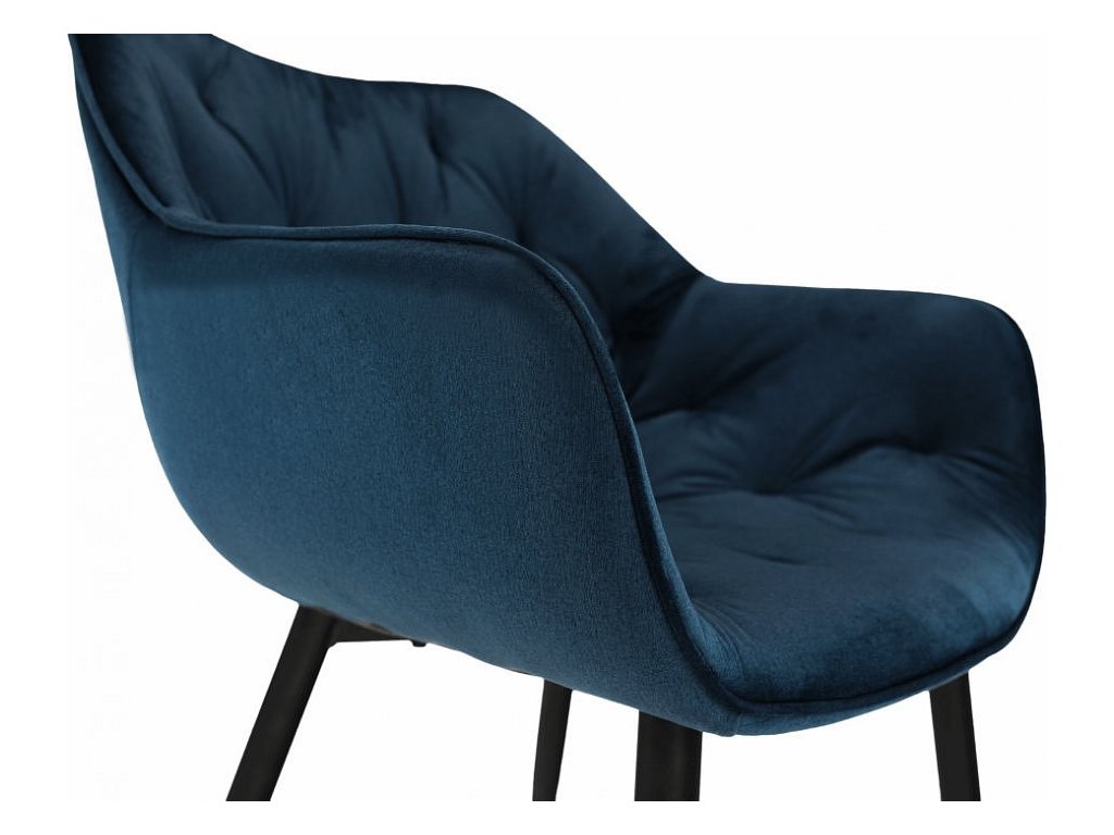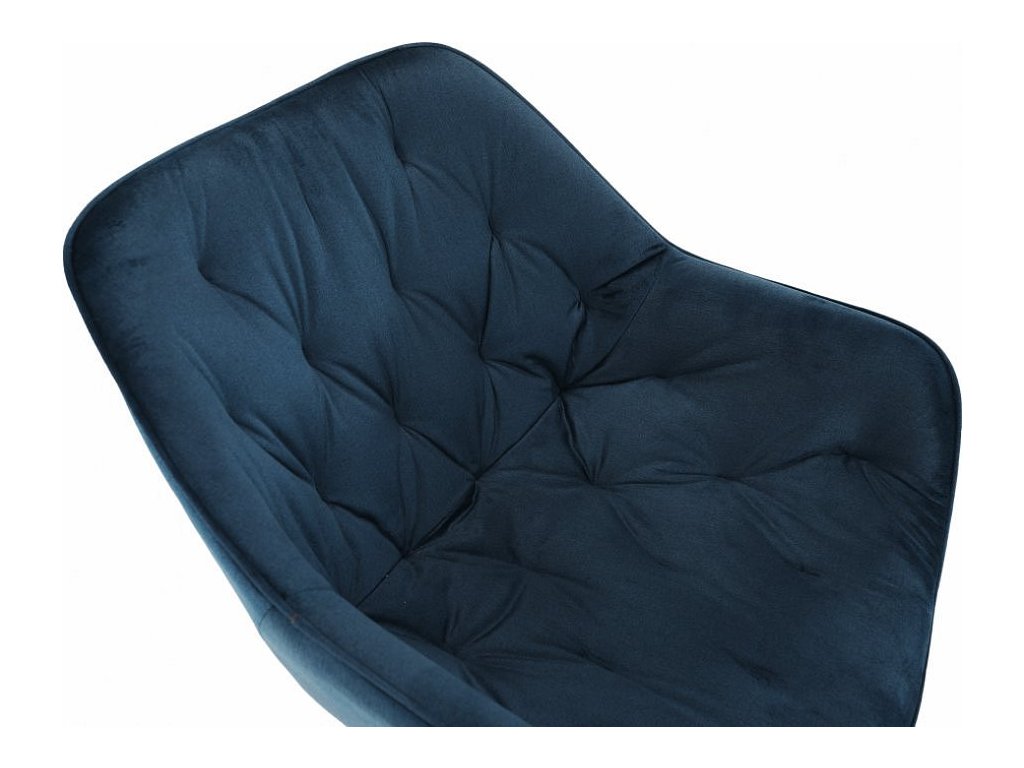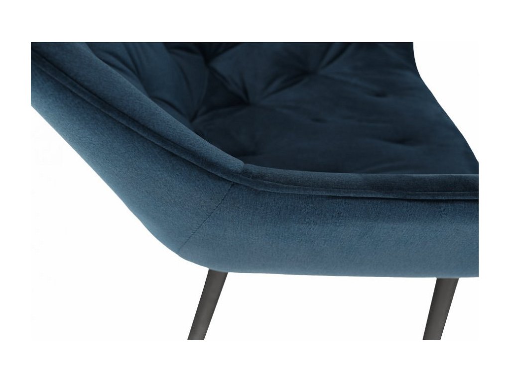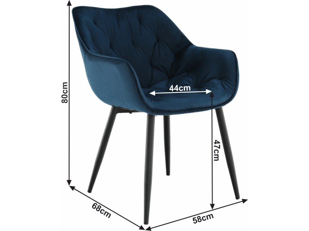 Materiál: Velvet látka / kov Oděruodolnost textilie podle testu Martindale: 80 000 oděrek Barva: modrá / černá Rozměry (ŠxHxV): 58x68x80 cm Výška sedu: 47cm Hloubka sedu: 44cm Nosnost: 100 kg designové prošívané Dodávané v demontu.