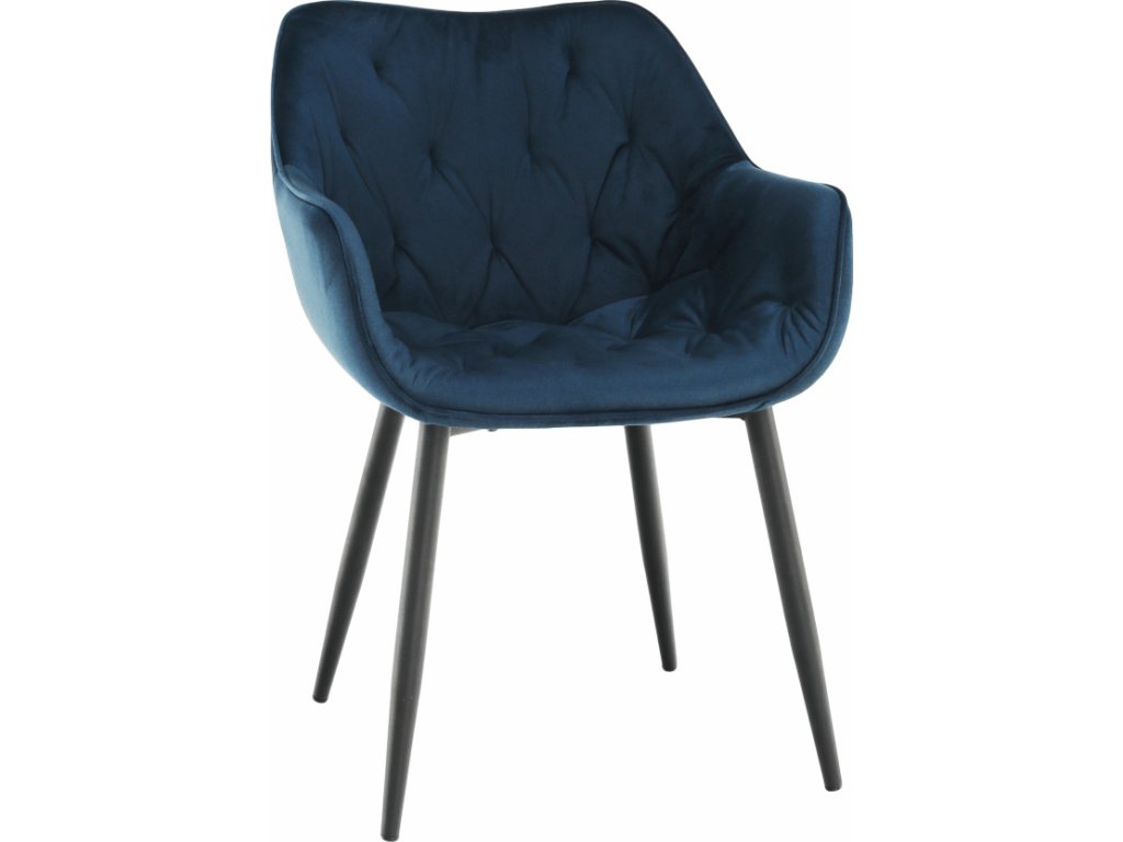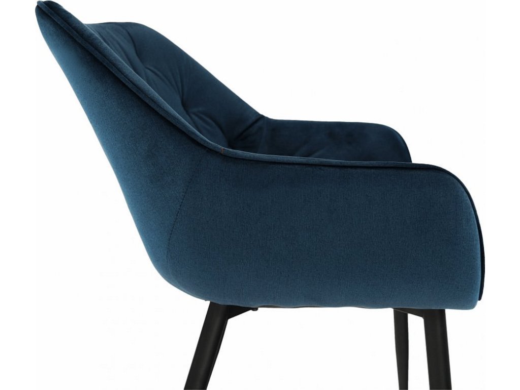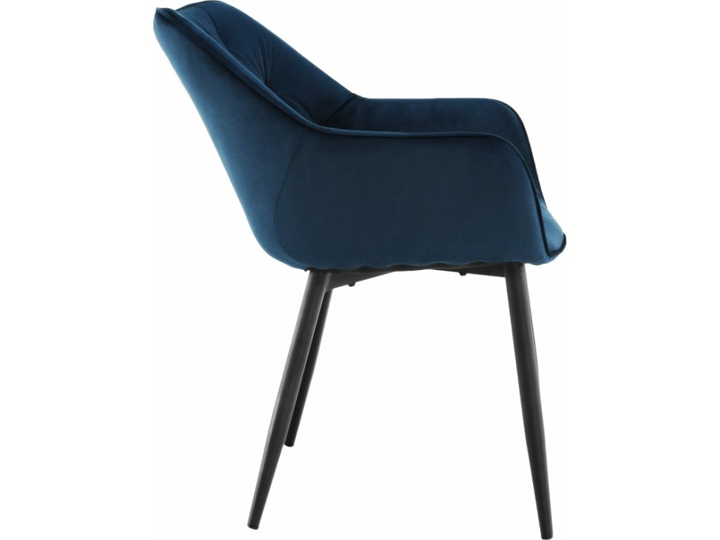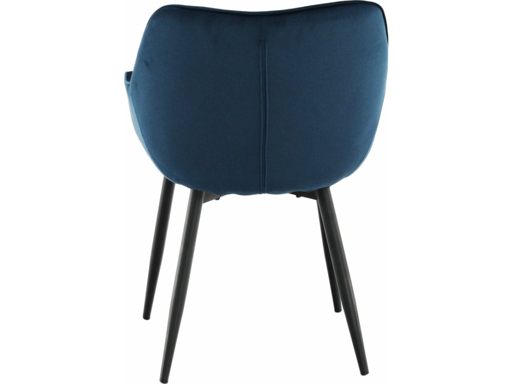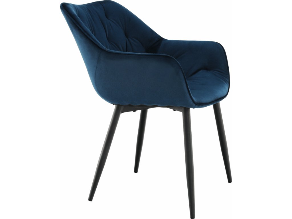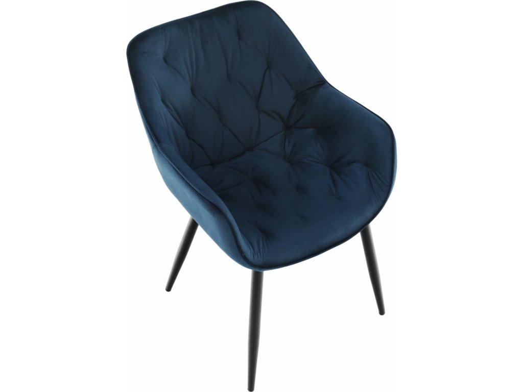 Materiál: Velvet látka / kov Oděruodolnost textilie podle testu Martindale: 80 000 oděrek Barva: modrá / černá Rozměry (ŠxHxV): 58x68x80 cm Výška sedu: 47cm Hloubka sedu: 44cm Nosnost: 100 kg designové prošívané Dodávané v demontu.