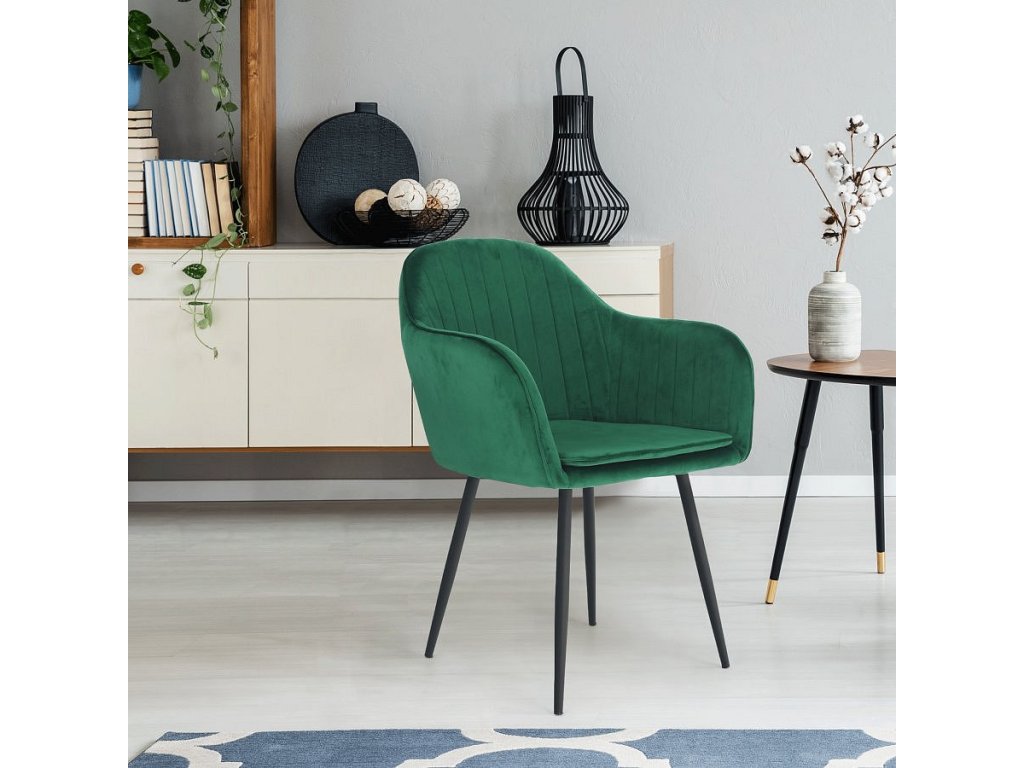 Materiál: látka Velvet / kov Oděruodolnost textilie podle testu Martindale: 80 000 oděrek Barva: smaragdová / černá Rozměry (ŠxHxV): 56x55x82 cm Výška sedu: 46 cm Hloubka sedu: 42 cm Nosnost: 130 kg designové prošívané S měkkou sedací částí Dodávané v demontu.