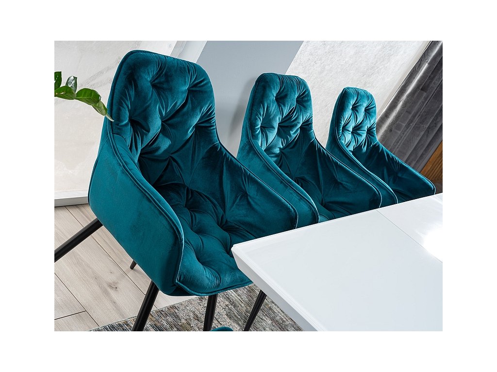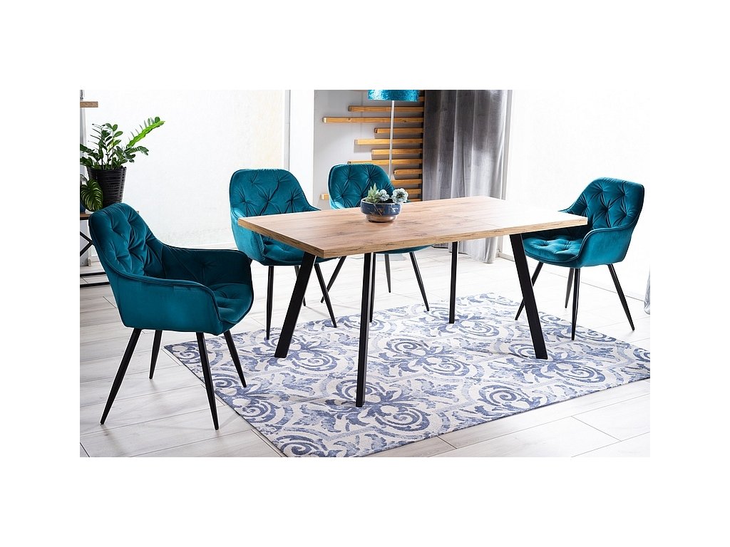 Atraktivní čalouněná židle - křeslo vhodná nejen do Vaší jídelny a kuchyně, ale také do kanceláře, čekárny či recepce. Konstrukce je z kovu černé barvy. Čalounění židle je z potahové látky aksamit (bluvel 85) v tyrkysové barvě. Dodáváme v demontovaném stavu.Doplňkové parametry