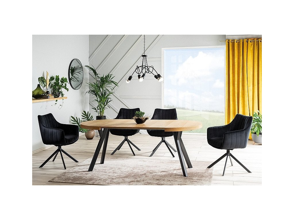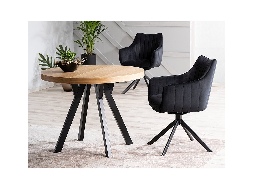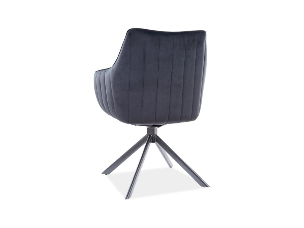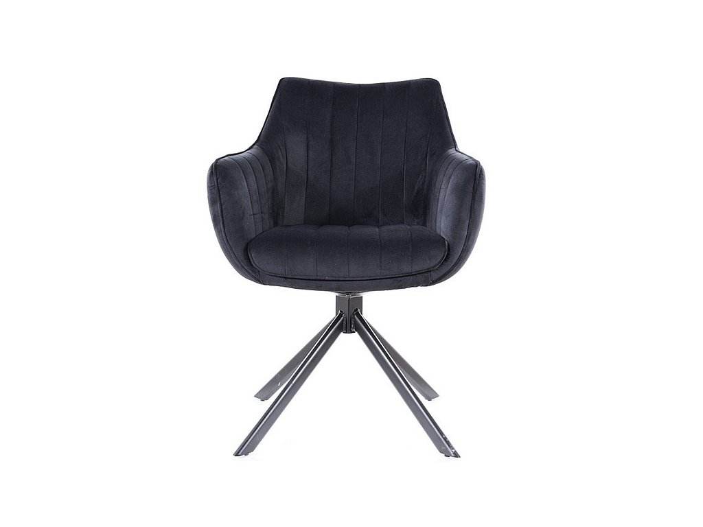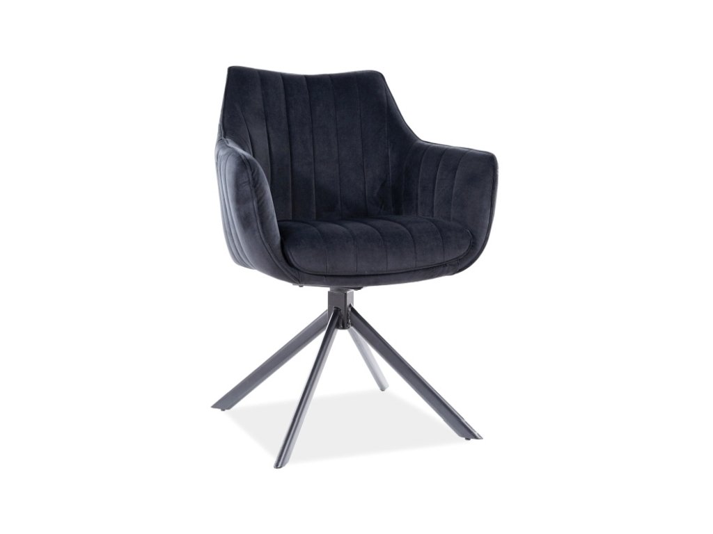 Atraktivní otočná čalouněná židle - křeslo, vhodná nejen do Vaší jídelny a kuchyně, ale také do kanceláře, čekárny či recepce. Kovová konstrukce je lakovaná černou matnou barvou, čalounění je z látky bluvel v černé barvě s elegantním prošíváním. Židle se hodí ke stolům, které najdete v naší uvedené nabídce.Doplňkové parametry