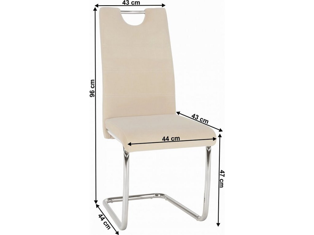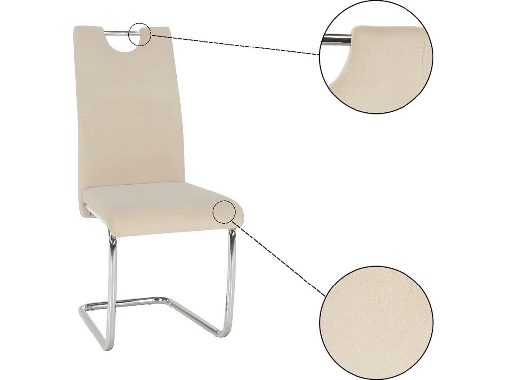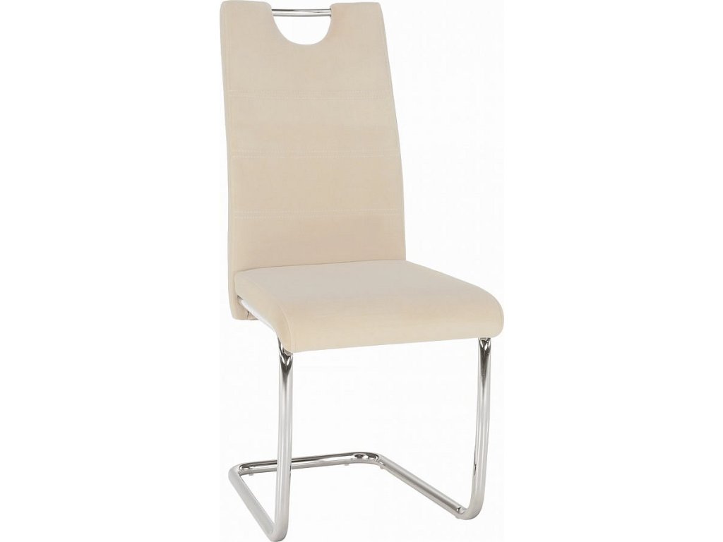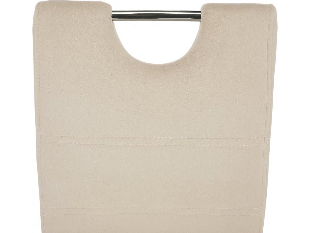 Jídelní židle. Materiál: velvet látka / chrom Oděruodolnost textilie podle testu Martindale: 85 000 oděrek Barva: béžová Dulux Rozměry (ŠxHxD): 43x44x96 cm Hloubka sezení: 43 cm Výška sezení: 47 cm Šířka sezení: 44 cm Dodávané v demontu. Nosnost: 110 kg