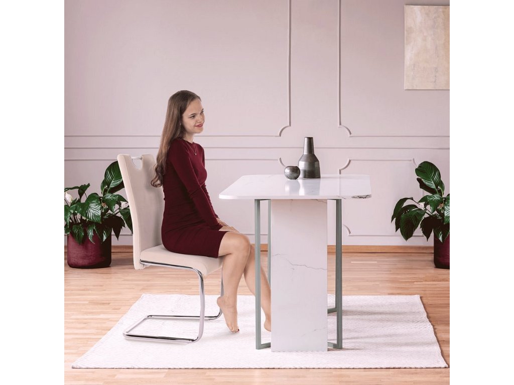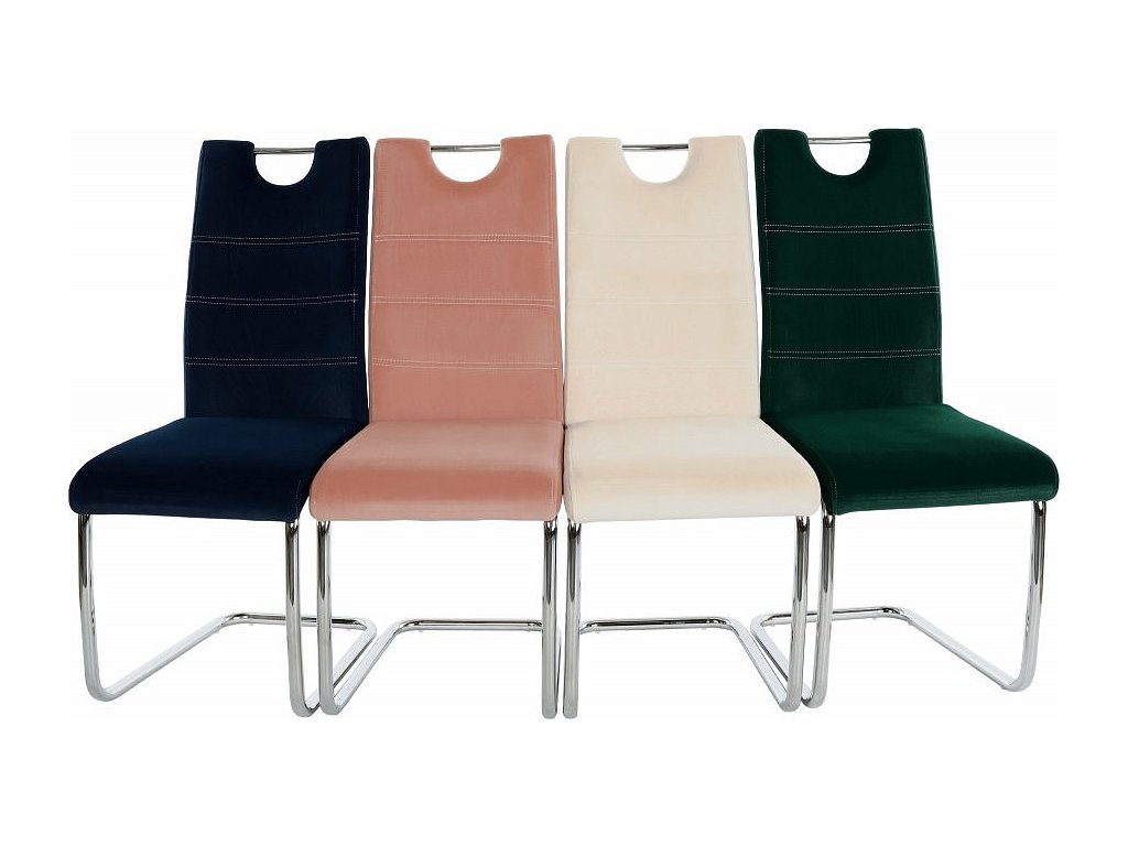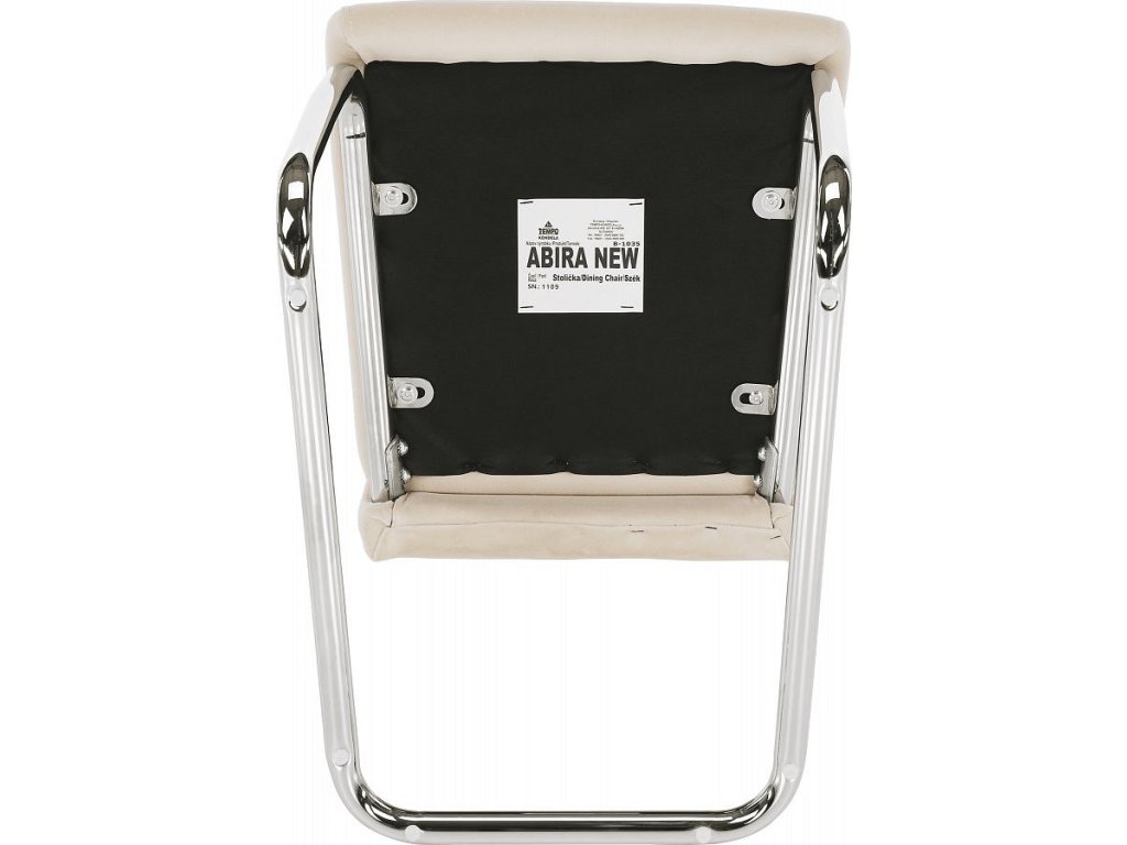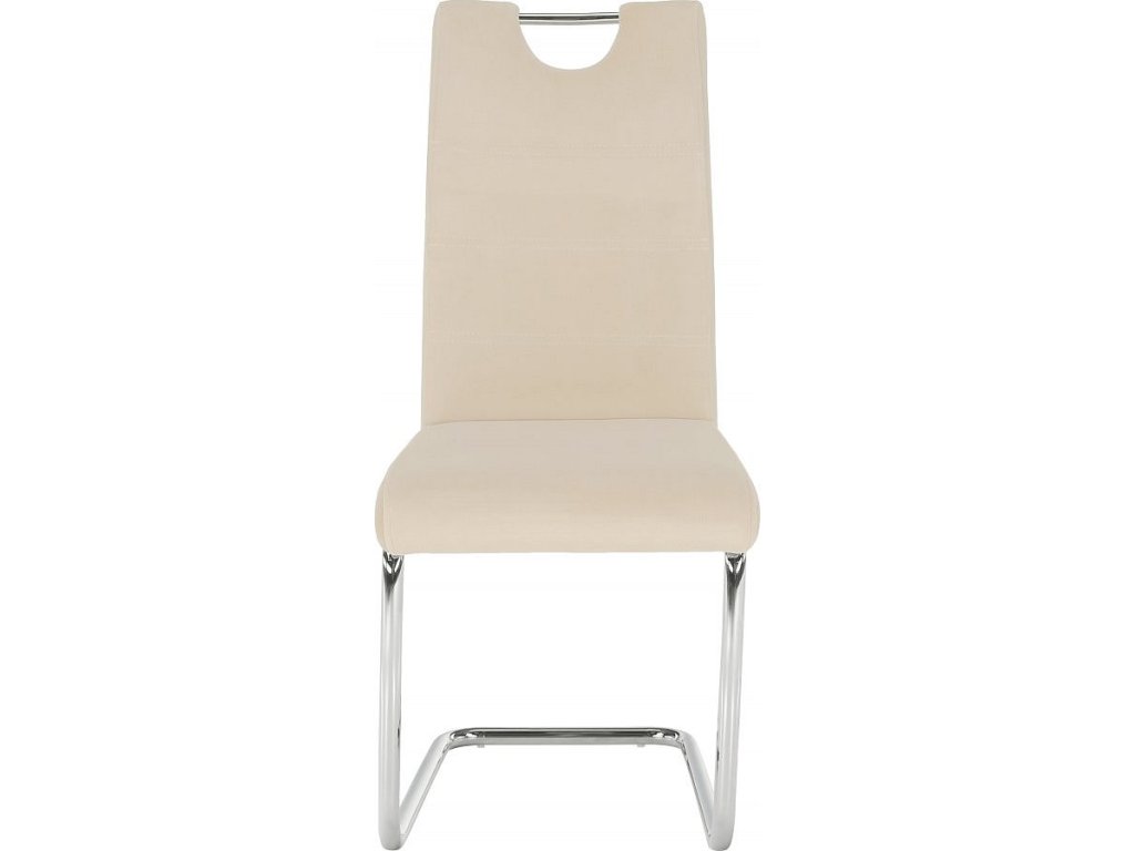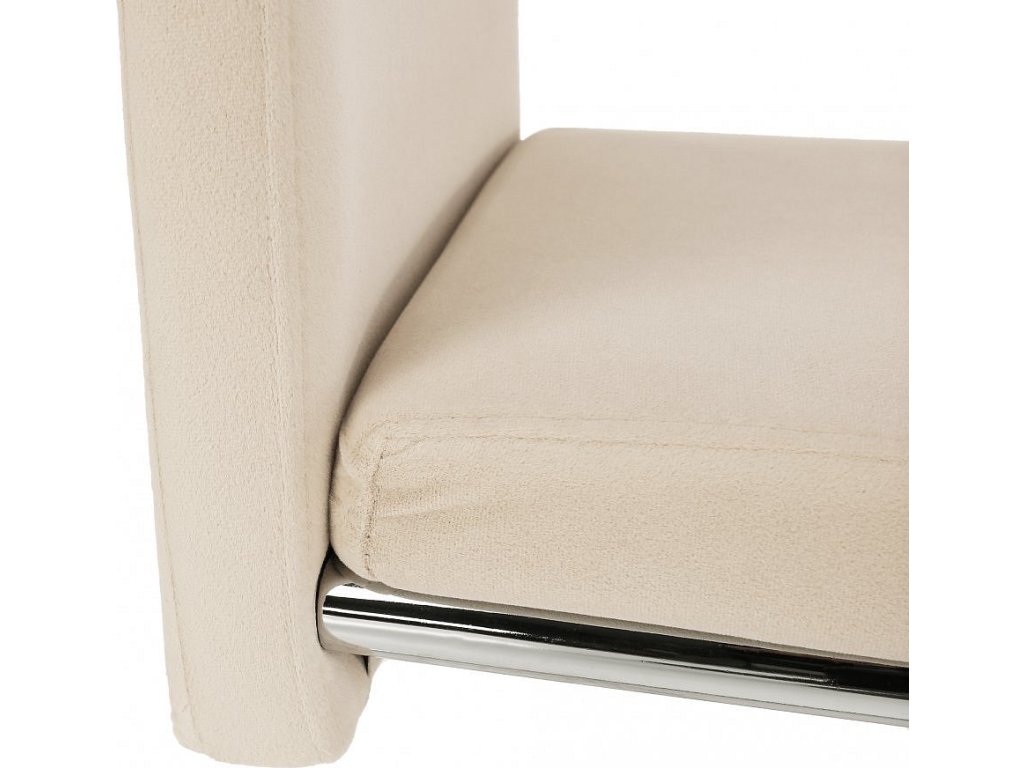 Jídelní židle. Materiál: velvet látka / chrom Oděruodolnost textilie podle testu Martindale: 85 000 oděrek Barva: béžová Dulux Rozměry (ŠxHxD): 43x44x96 cm Hloubka sezení: 43 cm Výška sezení: 47 cm Šířka sezení: 44 cm Dodávané v demontu. Nosnost: 110 kg
