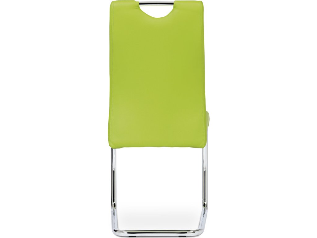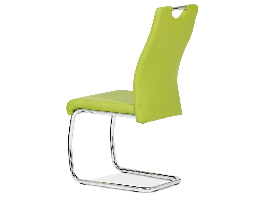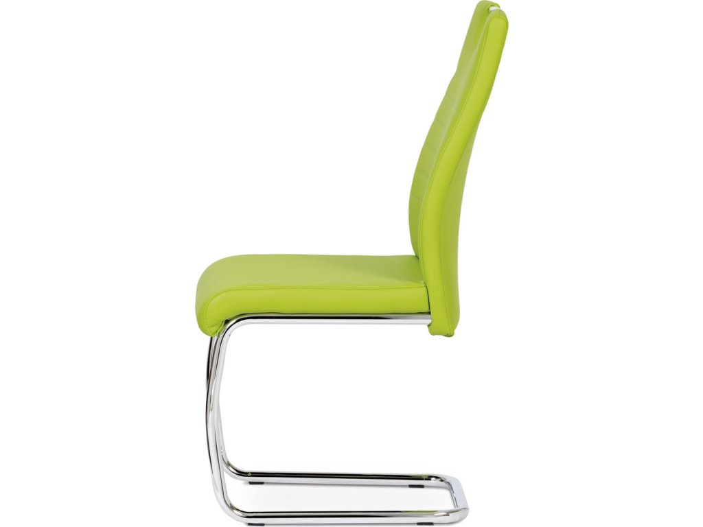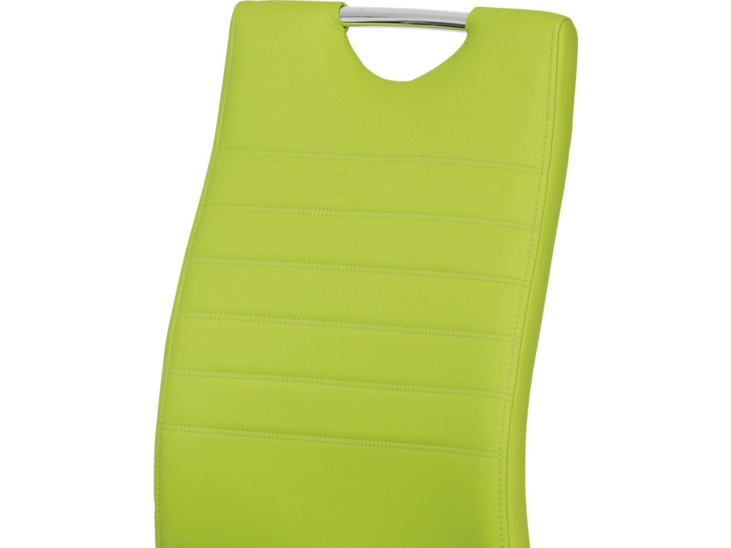 Jídelní židle s označením DCL-418 LIM nabízí moderní design v zelené barvě s potahem z ekokůže, který je příjemný na dotek a snadno se udržuje. Pevná kovová podnož v chromovaném provedení je tvarovaná do stabilní pohupové konstrukce, která zajišťuje mírný pohyb při sezení a přispívá k pohodlí. Sedák i opěradlo jsou ergonomicky tvarované a čalouněné pro komfortní posezení během delších jídel či setkání. Židle nemá područky ani otočný mechanismus, což ji činí vhodnou do menších prostor i k jídelním stolům s úzkým prostorem. Celková nosnost a rozměry odpovídají standardům pro běžné domácí použití.Doplňkové parametry