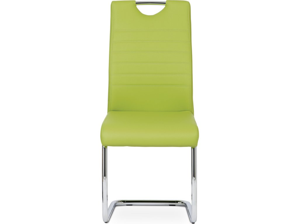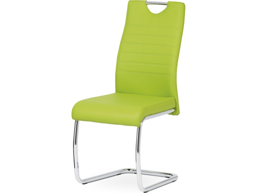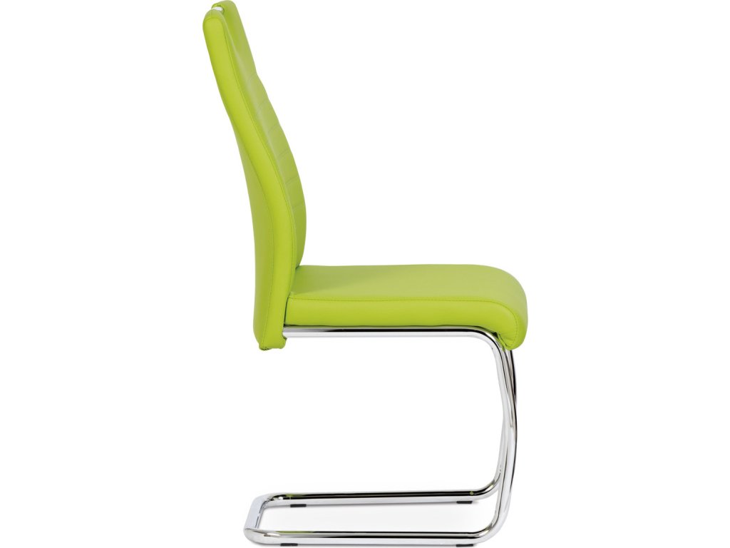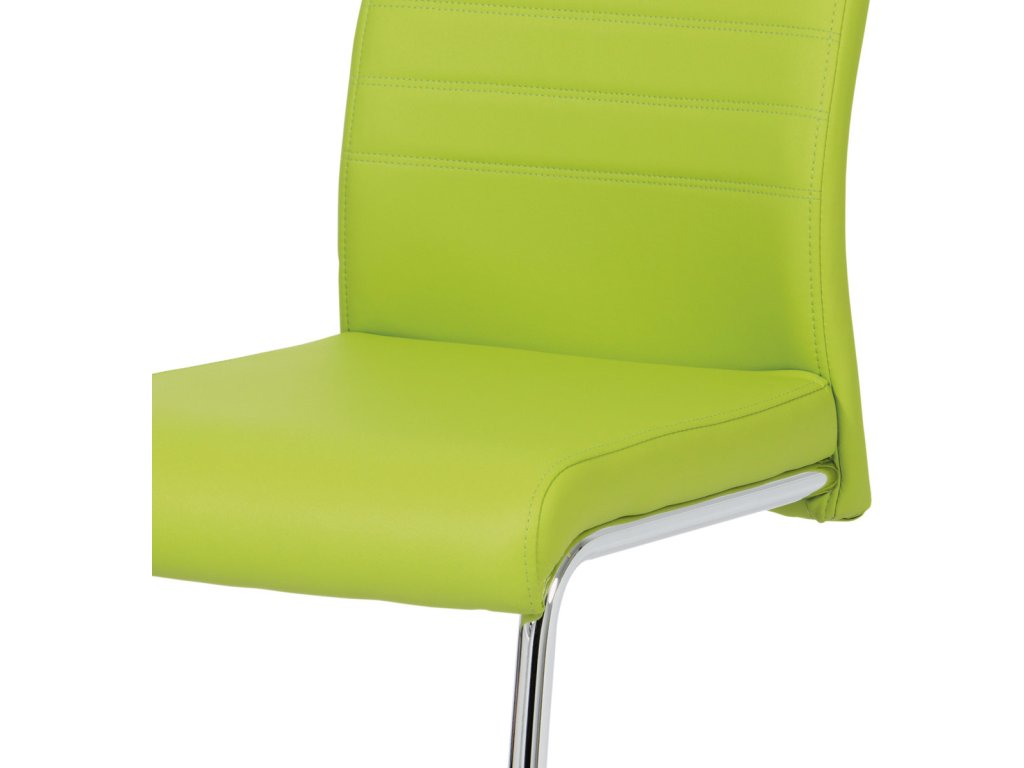 Jídelní židle s označením DCL-418 LIM nabízí moderní design v zelené barvě s potahem z ekokůže, který je příjemný na dotek a snadno se udržuje. Pevná kovová podnož v chromovaném provedení je tvarovaná do stabilní pohupové konstrukce, která zajišťuje mírný pohyb při sezení a přispívá k pohodlí. Sedák i opěradlo jsou ergonomicky tvarované a čalouněné pro komfortní posezení během delších jídel či setkání. Židle nemá područky ani otočný mechanismus, což ji činí vhodnou do menších prostor i k jídelním stolům s úzkým prostorem. Celková nosnost a rozměry odpovídají standardům pro běžné domácí použití.Doplňkové parametry