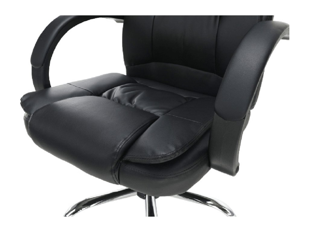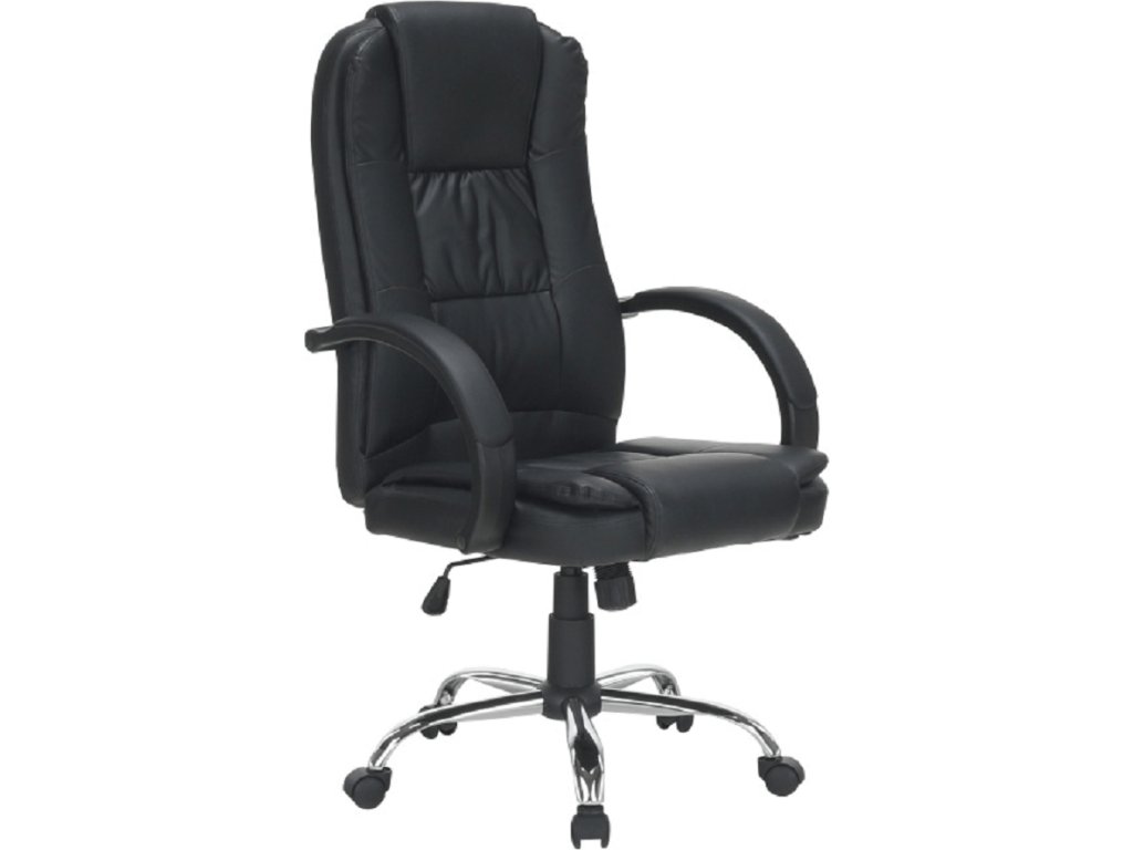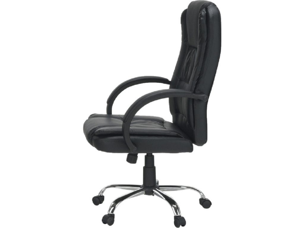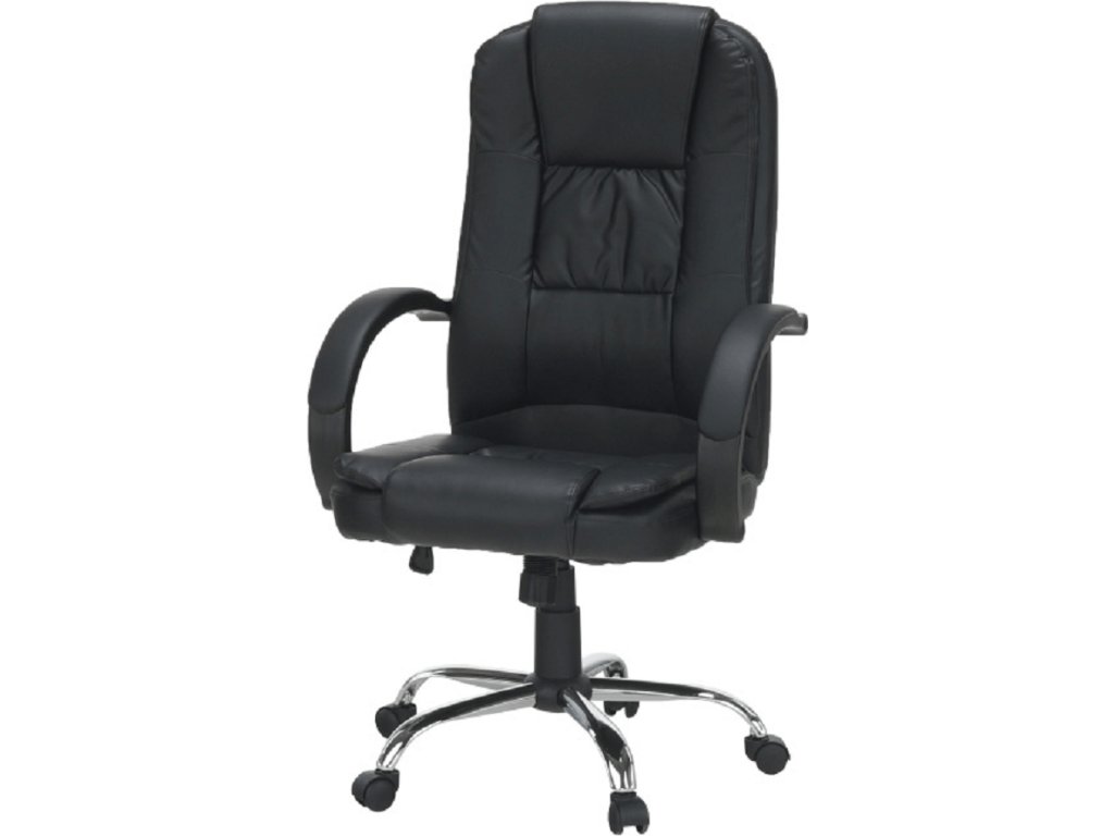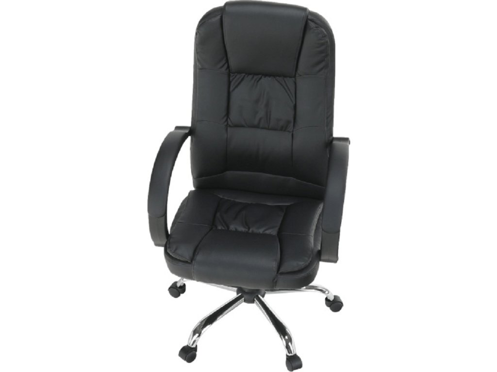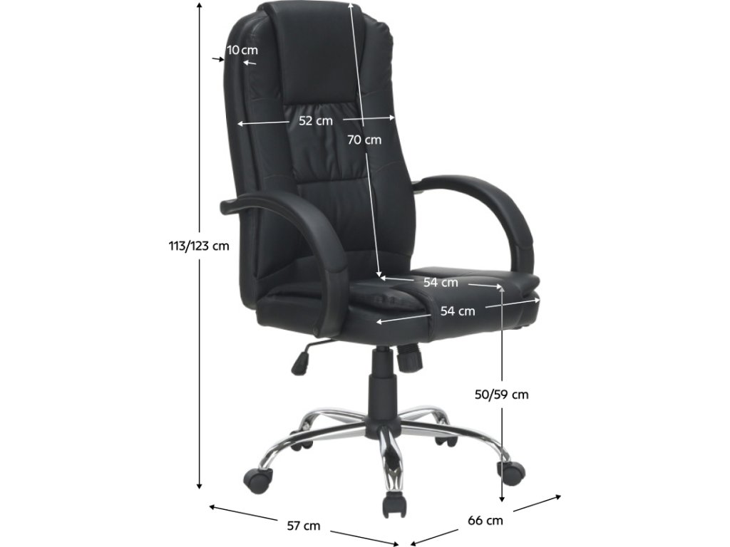 Kancelářské křeslo s čalouněnými opěrkami MADOX Barva: černá / chrom Materiál: ekokůže / kov / plast Oděruodolnost textilie podle testu Martindale: 80 000 oděrek Rozměry (ŠxHxV): 66x73x112-122 cm Výška sedu: 45-55 cm Hloubka sedu: 52 cm Nosnost: 150 kg Opěrka zad (ŠxV): 52x79 cm Sedadlo (ŠxH): 52x52 cm Dodávané v demontu.