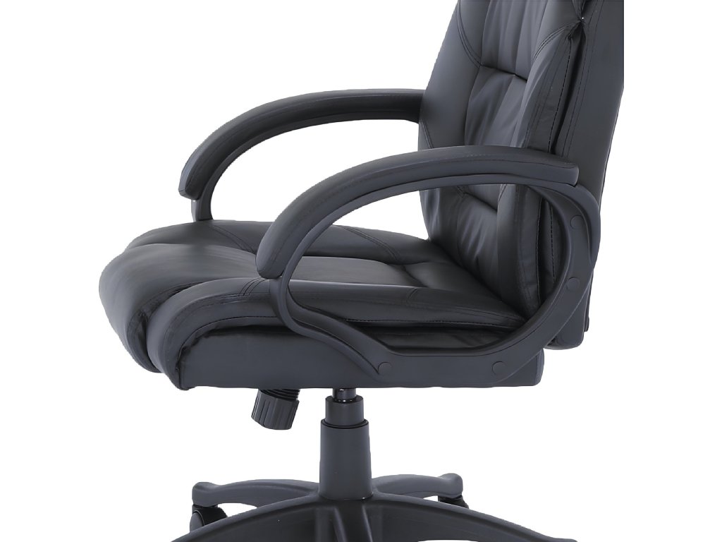kancelářské křeslo Materiál: ekokůže / plast Oděruodolnost ekokůže podle testu Martindale: 100 000 oděrek Barva:černá Rrozmery (ŠxHxV): 64x72x112-122 cm. Nosnost: 110 kg Opěrka zad (ŠxV): 52x76 cm Sedadlo (ŠxH): 52x52 cm