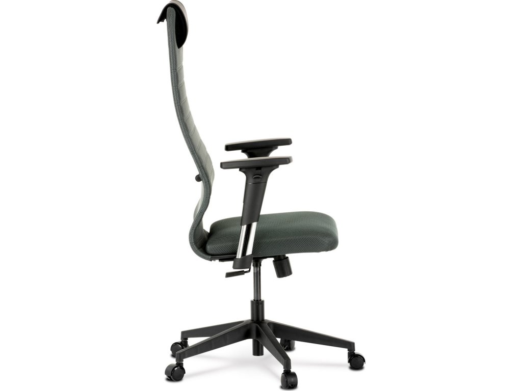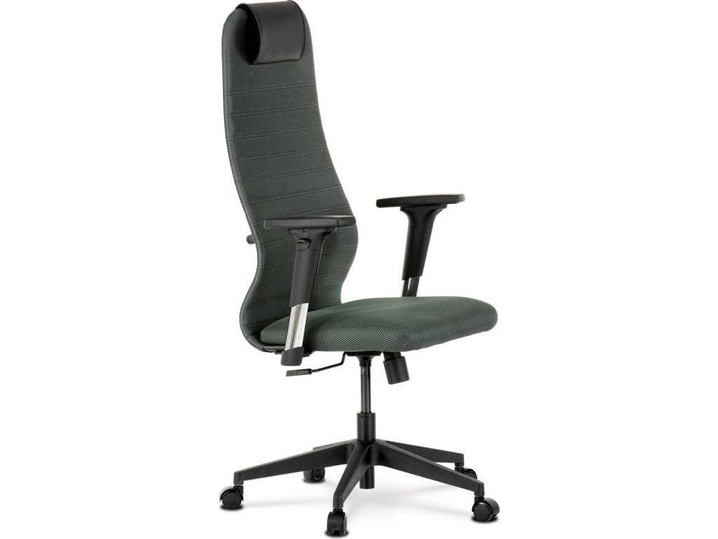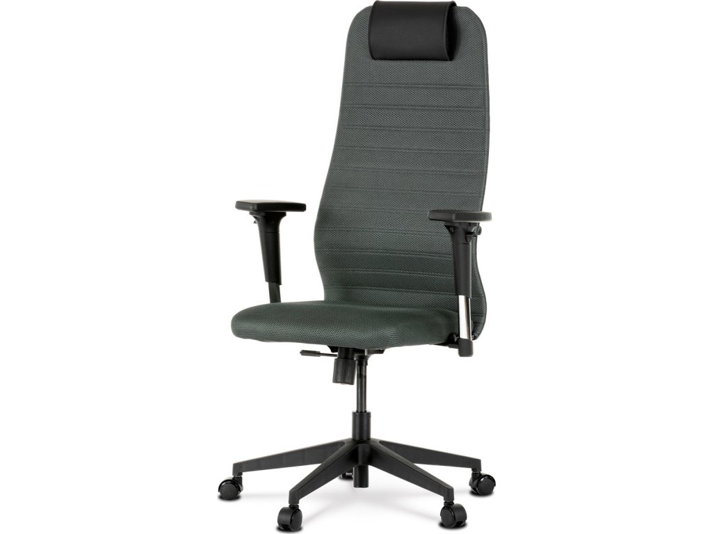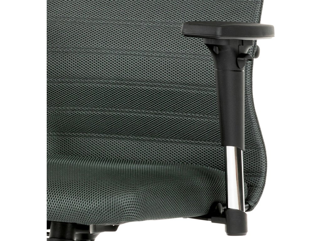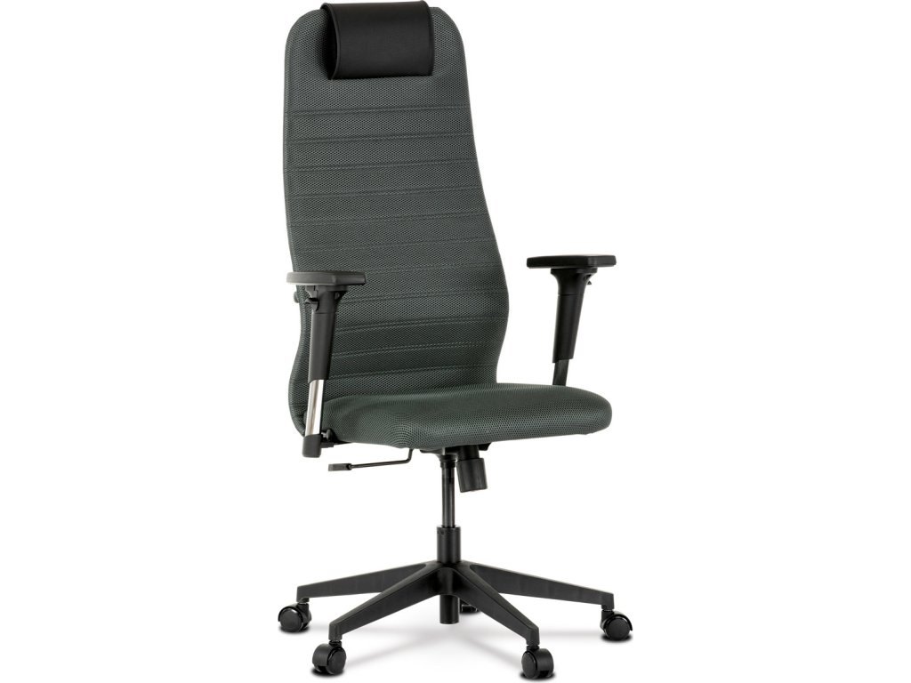 Luxusní kancelářské křeslo z kolekce TOP artium. Jedná se o moderní designové křeslo, navržené pro kancelářskou práci s významným zaměřením na maximálním pohodlí a nadstandardní ergonomii sezení. Tou je ergonomický tvar opěráku a sedáku, který přesně odpovídá anatomickému tvaru lidského těla, podporuje a odlehčuje páteř. Dále měkká opěrka hlavy, která poskytuje ideální oporu hlavě, uvolňuje napětí z krku a ramen. Jedinečný tvar přední části sedáku eliminuje mačkání cév nohou při zachování pocitu lehkosti v nich. V neposlední řadě i pevná bederní opěrka pro větší pohodlí a jako bonus možnost nastavení hloubky sedu při montáži. Rám křesla je tvořen z kovového profilu s černým polymerovým povlakem a překližkou. Potah sedáku i opěráku je z odolné tmavě šedé látky MESH, výplň z vysoce kvalitní PU pěny. Na opěráku v tenké vrstvě, aby umožnila tělu „dýchat“. Hlavová opěrka je z černé ekokůže, vyplněná PU pěnou. Na zadní straně opěráku je uchycena pomocí suchého zipu. Židle je vybavena houpacím mechanismem s nastavením protiváhy a aretací v základní poloze. Tuhost protiváhy lze regulovat velkým plastovým šroubem, umístěným pod sedákem. Výška sezení se upravuje páčkou na pravé straně přes kvalitní plynový píst. Masivní černý plastový kříž o průměru 64 cm je osazen černými kolečky vhodnými na koberce. Područky jsou výškově nastavitelné z černého plastu. Opěrka je měkčená a navíc posuvná vpřed / vzad. Šíře područky je 9 cm, delká 25 cm a výška 3 cm. Nosnost židle je 120 kg.Doplňkové parametry