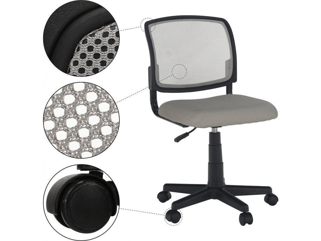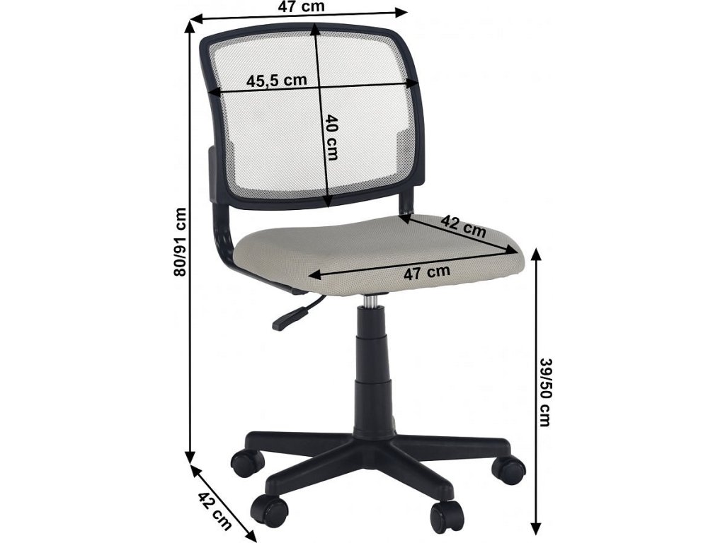 Materiál čalounění: síťovina Oděruodolnost textilie podle testu Martindale: 90 000 oděrek Barva čalounění: šedá Materiál podstava: plast Barva podstava: černá Rozměry (ŠxHxV): 47x42x80 / 91 cm Nastavitelná výška sedu: 39-50 cm Hloubka sedu: 42 cm Šířka sedu: 47 cm Výška zádové opěrky: 40 cm Šířka zádové opěrky: 45,5 cm Nosnost: 90 kg otočná S kolečky Dodávané v demontu
