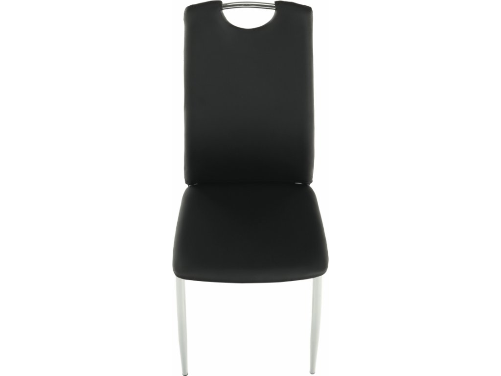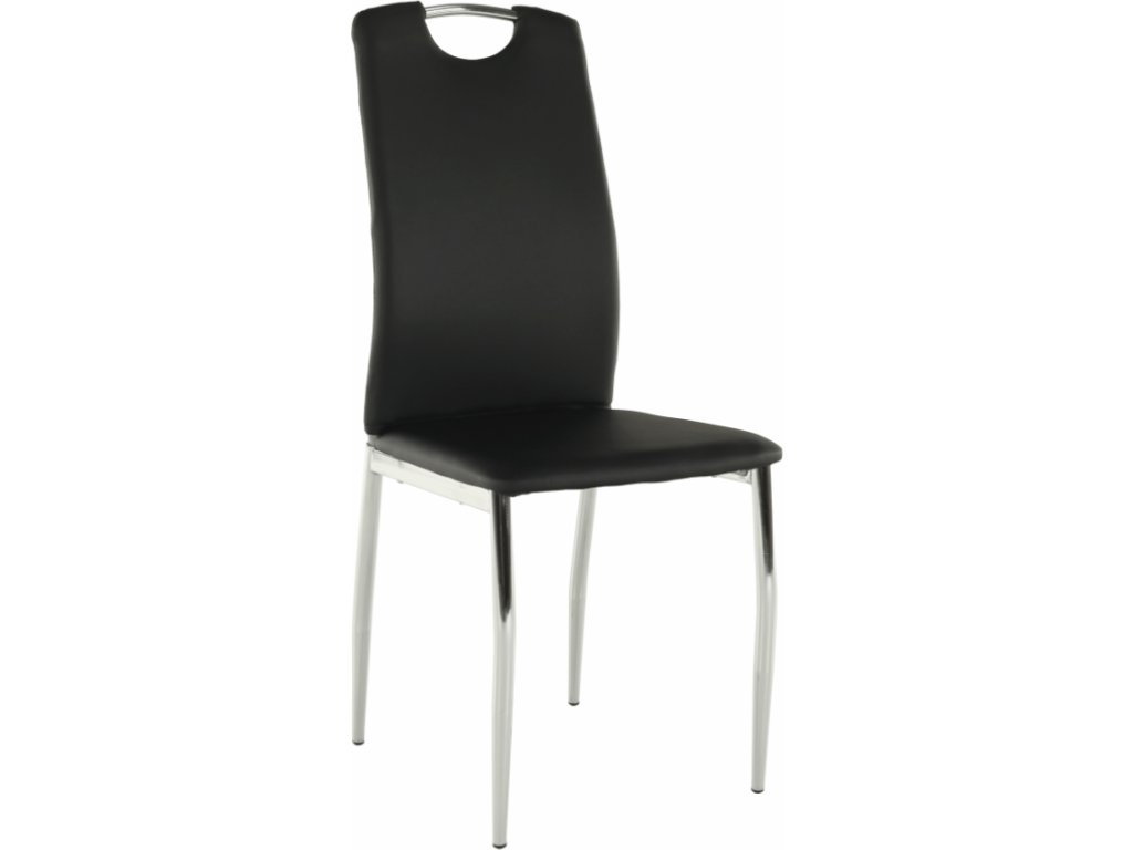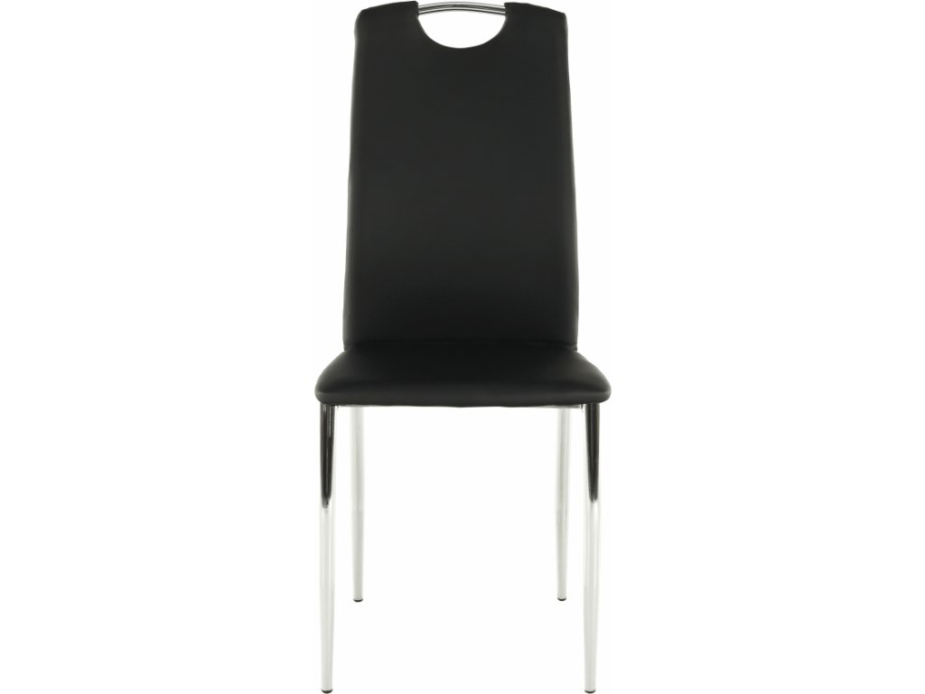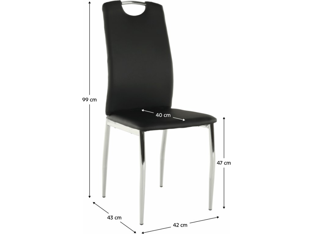Jídelní židle ERVINA Materiál: ekokůže / chrom Oděruodolnost textilie podle testu Martindale: 100 000 oděrek Barva: černá Rozměry (ŠxHxV): 42x43x99 cm Výška sedu: 47 cm Hloubka sedu: 40 cm Nosnost: 110 kg Dodávané v demontu.