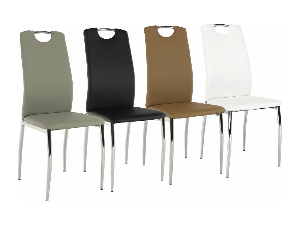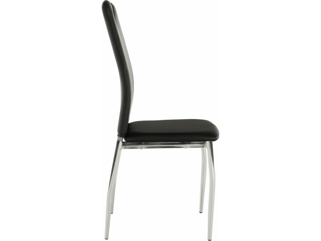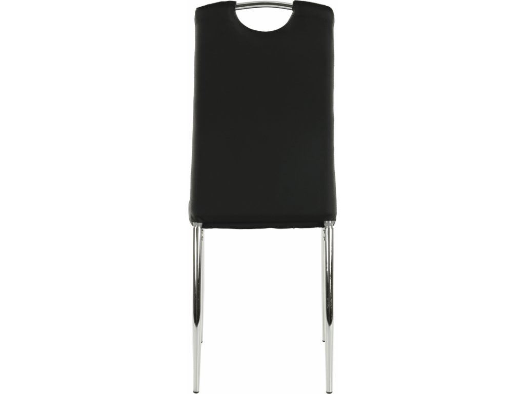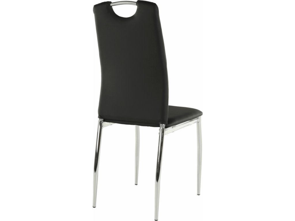 Jídelní židle ERVINA Materiál: ekokůže / chrom Oděruodolnost textilie podle testu Martindale: 100 000 oděrek Barva: černá Rozměry (ŠxHxV): 42x43x99 cm Výška sedu: 47 cm Hloubka sedu: 40 cm Nosnost: 110 kg Dodávané v demontu.