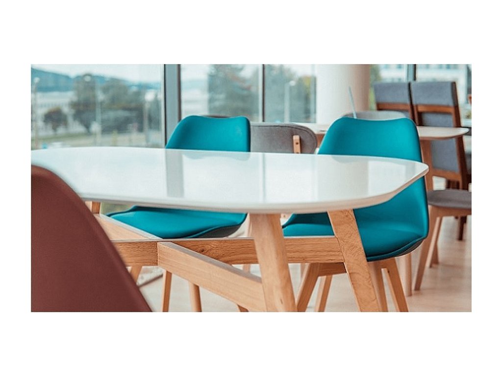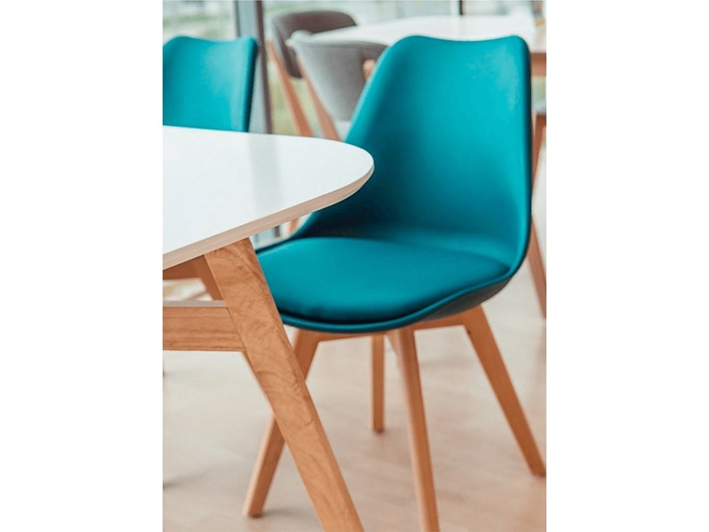 Materiál: dřevo / plast / ekokůže Oděruodolnost textilie podle testu Martindale: 100 000 oděrek Barva: buk / petrolejová Rozměry (ŠxHxV): 48x54x80 cm Výška sedu: 46 cm Hloubka sedu: 42 cm Extra měkké sezení Nosnost: 110 kg Dodávané v demontu