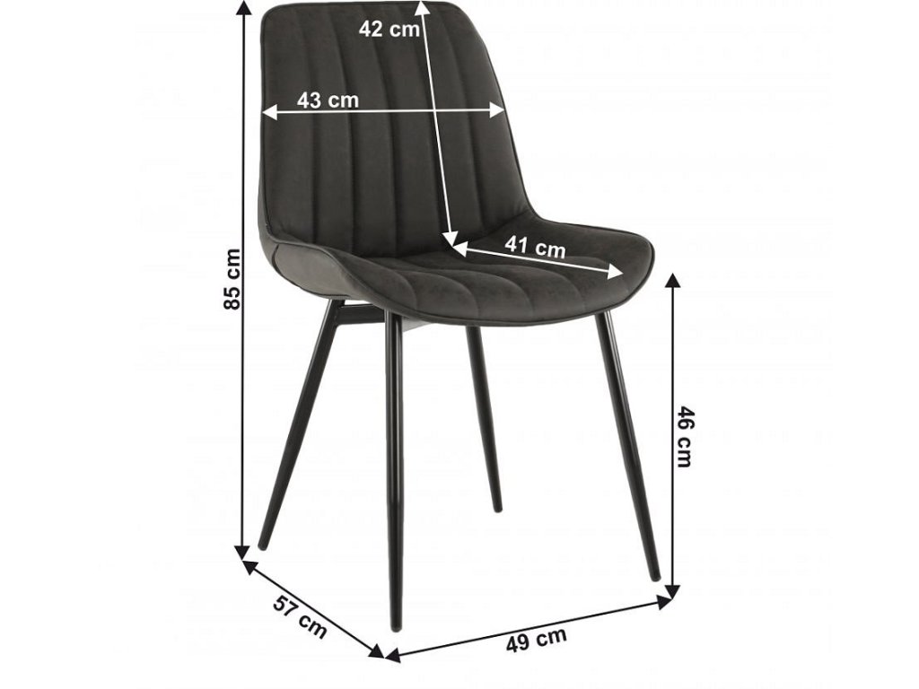 Materiál: ekokůže / kov Oděruodolnost textilie podle testu Martindale: 68 000 oděrek Barva: tmavě šedá / černá Rozměry (ŠxHxV): 49x57x85 cm Výška sedu: 46 cm Hloubka sedu: 41 cm Šířka sedu: 49 cm Šířka zádové opěrky: 43 cm Výška zádové opěrky: 42 cm Nosnost: 110 kg Dodávané v demontu