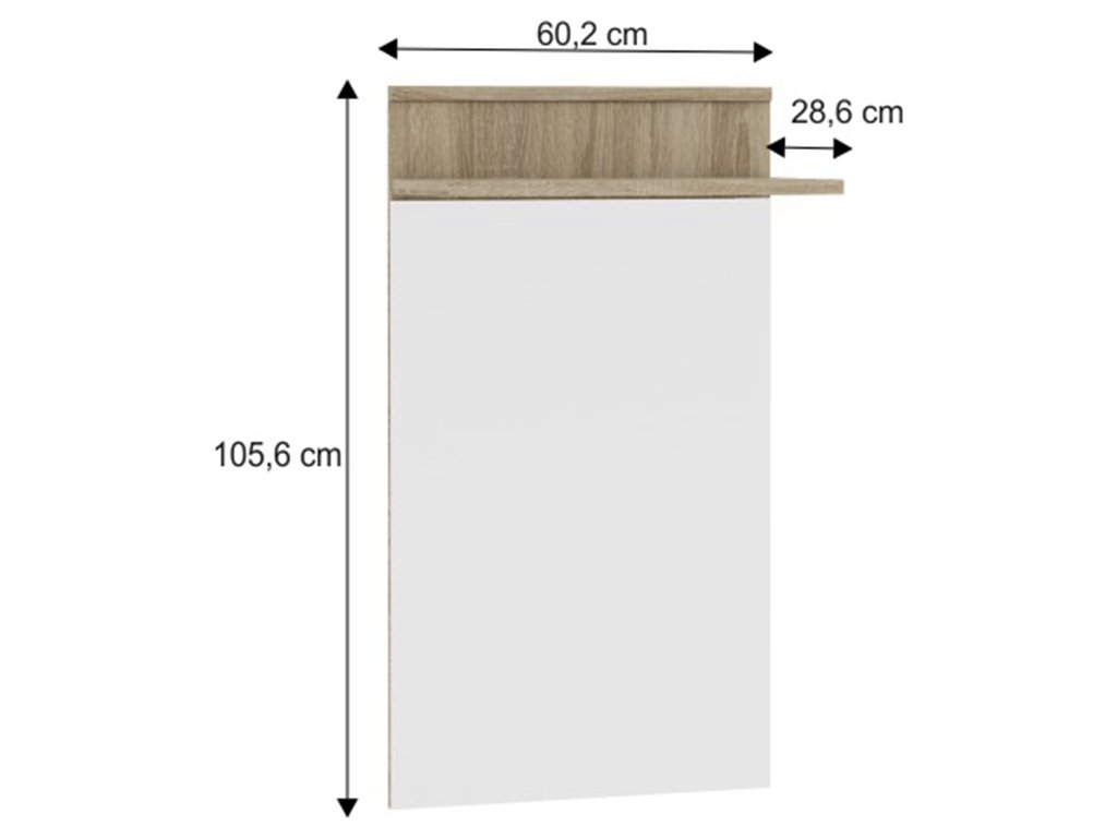 Nástavec se zrcadlem, Typ E-5, komponent z předsíňové sestavy, Materiál DTD laminovaná, Barevné provedení: dub sonoma. Rozměry: (ŠxVxH): 60,2x106,5x28 cm. Tloušťka materiálu: 16/22 mm
