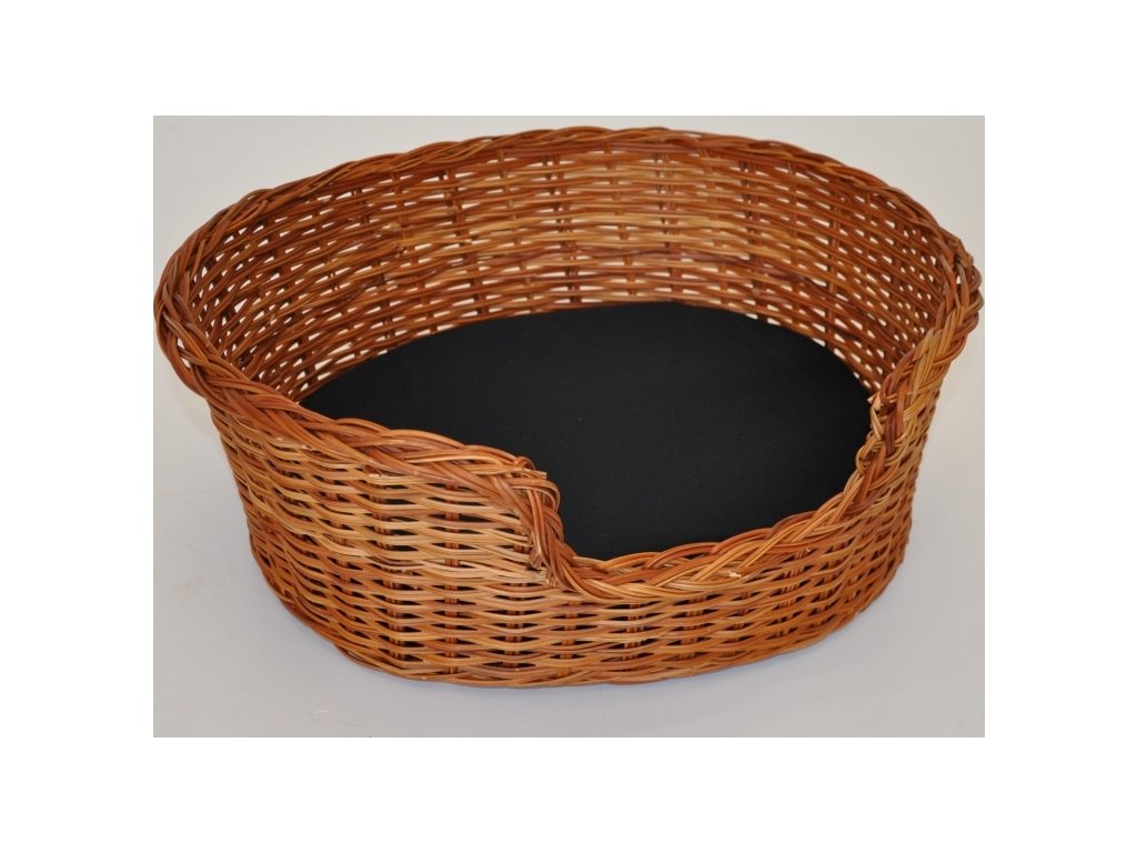 Proutěný pelech vyrobený z přírodní kapradiny bez povrchové úpravy lakováním. | Velikost pelechu je 48x39x19 cm. Polstr v černé barvě je plněný polyesterovým antialegenním vláknem.>